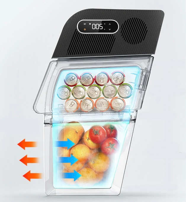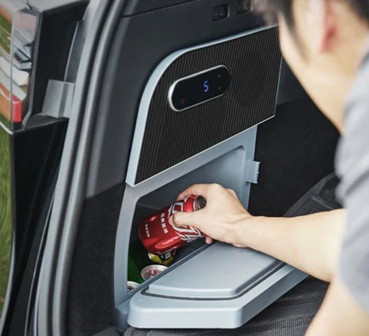 Deze inbouw koelbox/koelkast past direct in de kofferbak van uw Tesla Model Y in de linker bak bij het achterwiel.